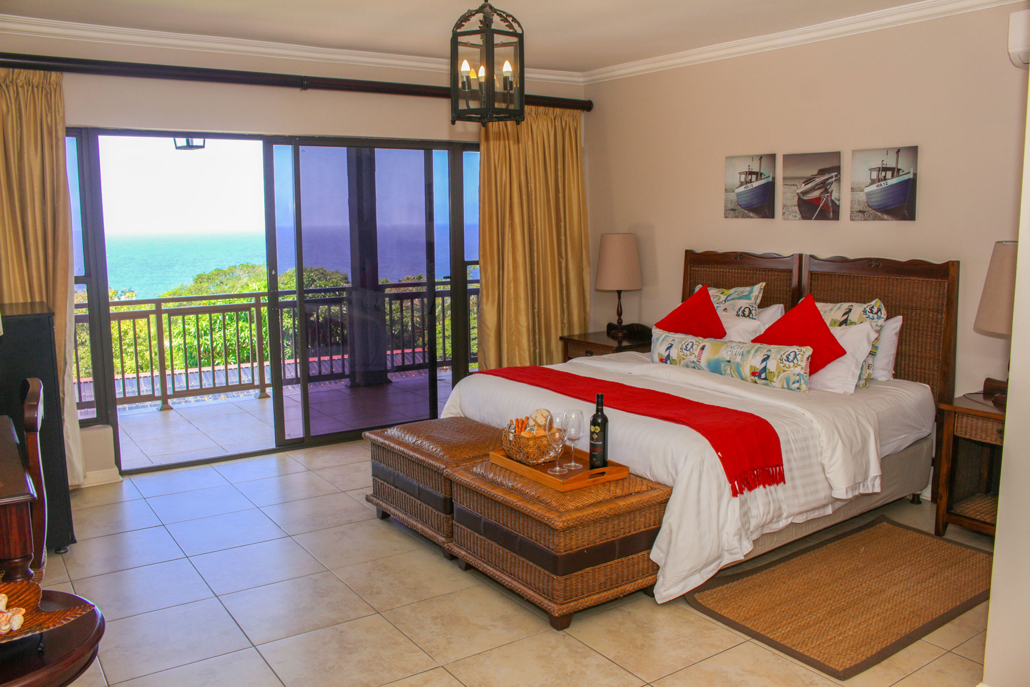 Luxury Sea Facing Room, with a balcony that opens onto views of Ballito’s iconic Sea and breath-taking coastline.